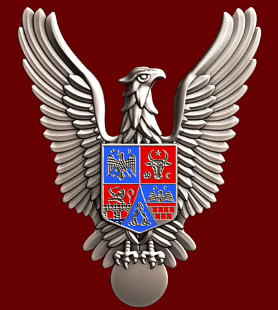 Însemn militar 55x44mm, tombac argintat emailat la cald, gravură laser