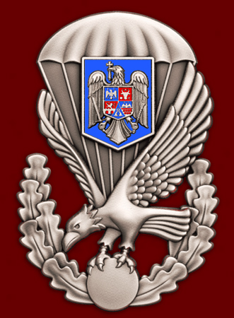 Însemn militar 45x30mm, tombac argintat emailat la cald, gravură laser