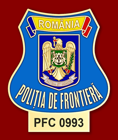 Însemn Poliția de Frontieră 60x50mm, alamă emailată la cald, gravură laser