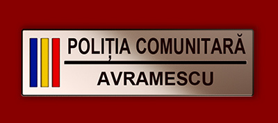Insignă nume Poliția Comunitară 20x70mm, alamă nichelată emailată la cald, gravură laser