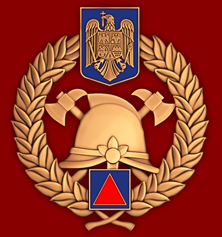 Însemn I.S.U. 45x40mm, zamac cuprat emailat la cald