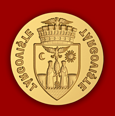 Sigiliul municipiului Târgoviște,  diametrul 40mm, alamă acoperită galvanic cu aur